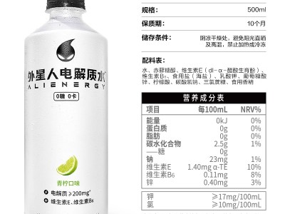 外星人电解质水青柠味300mL×6瓶0糖0卡含维生素饮料运动健身
