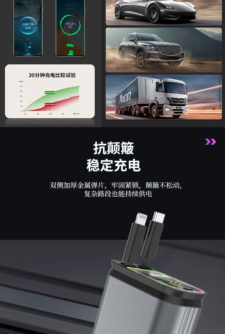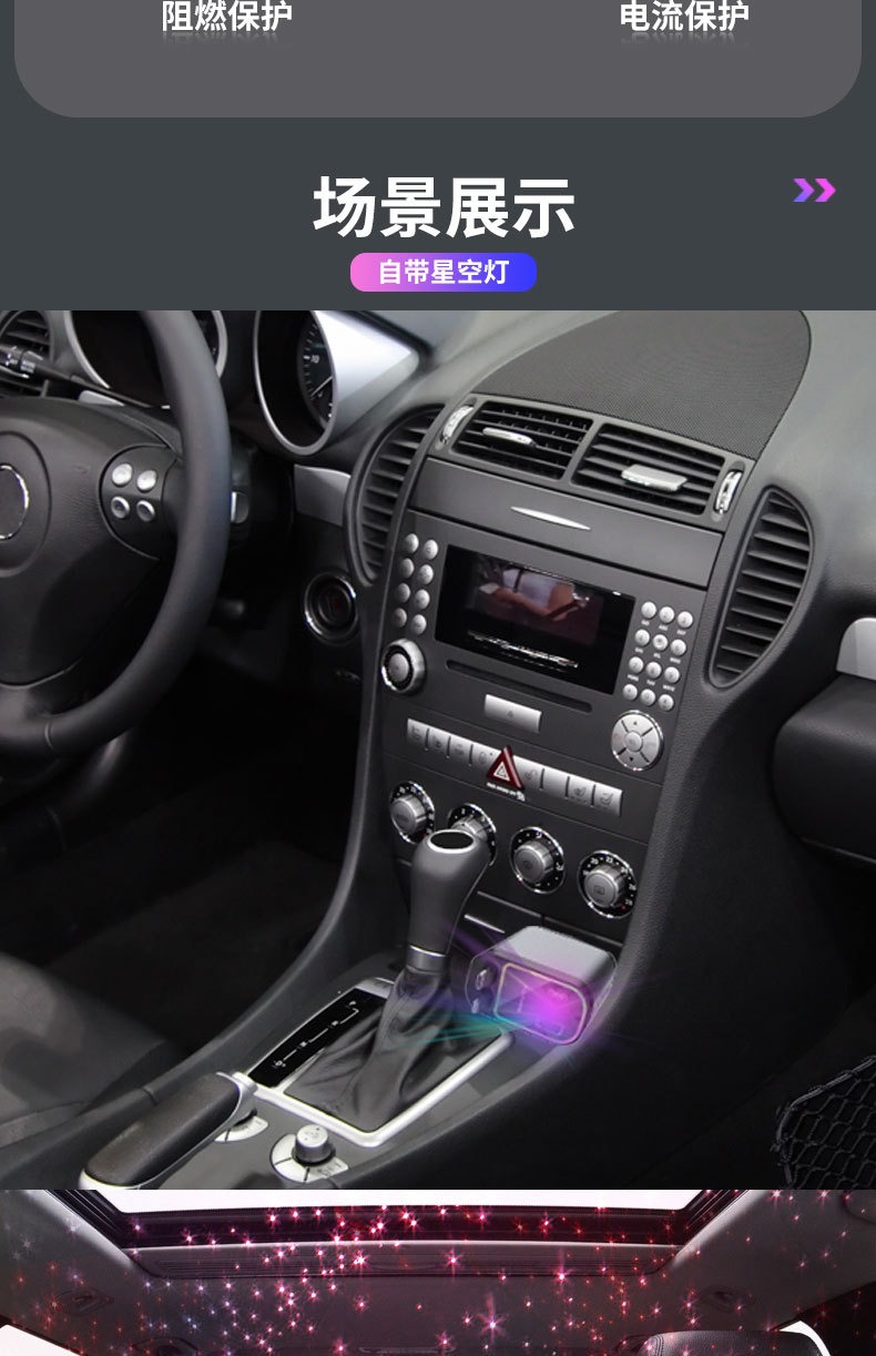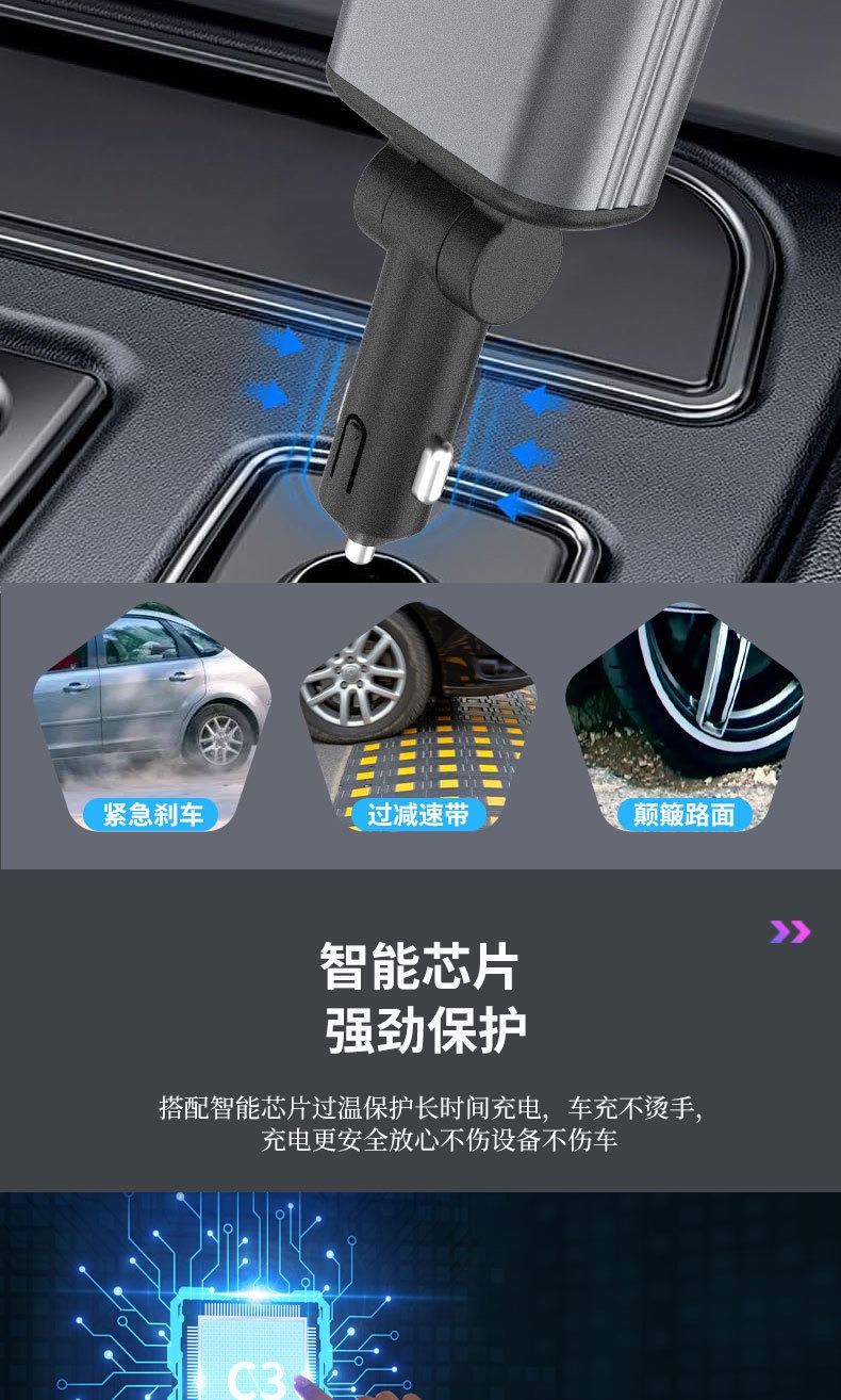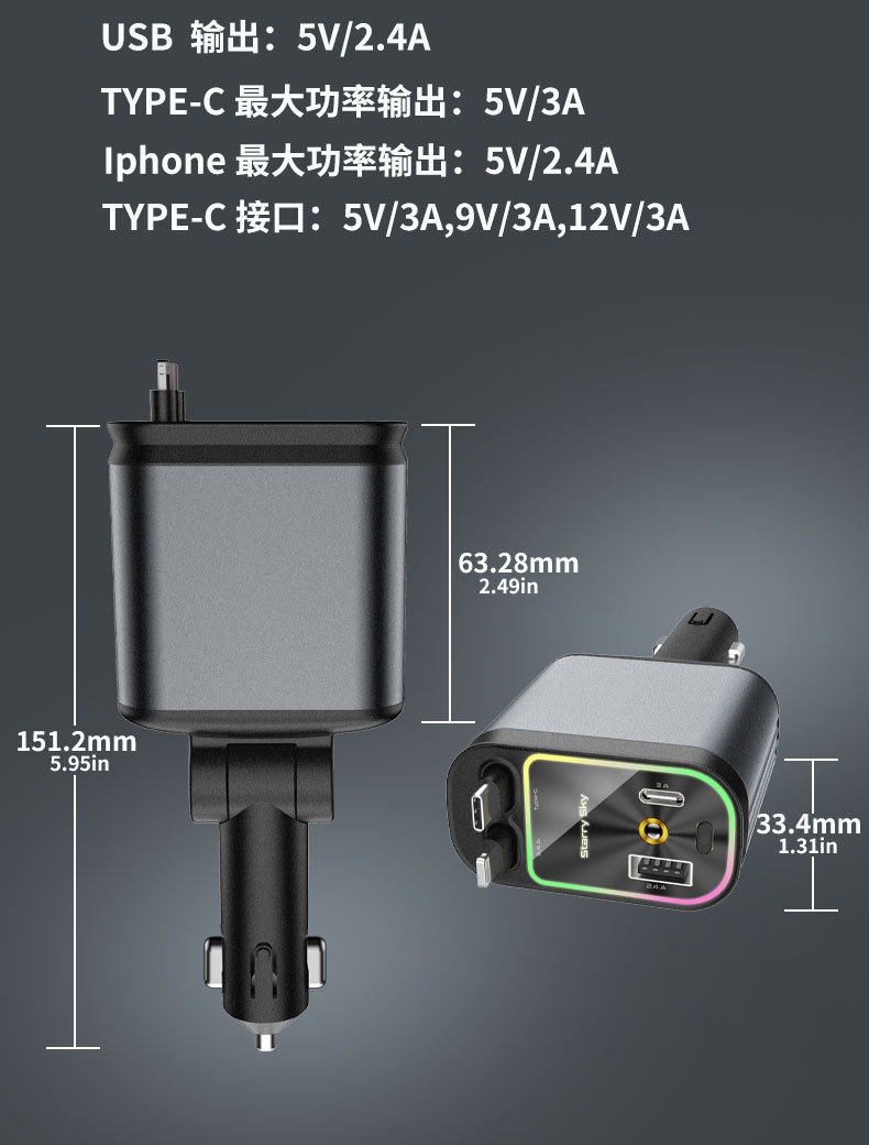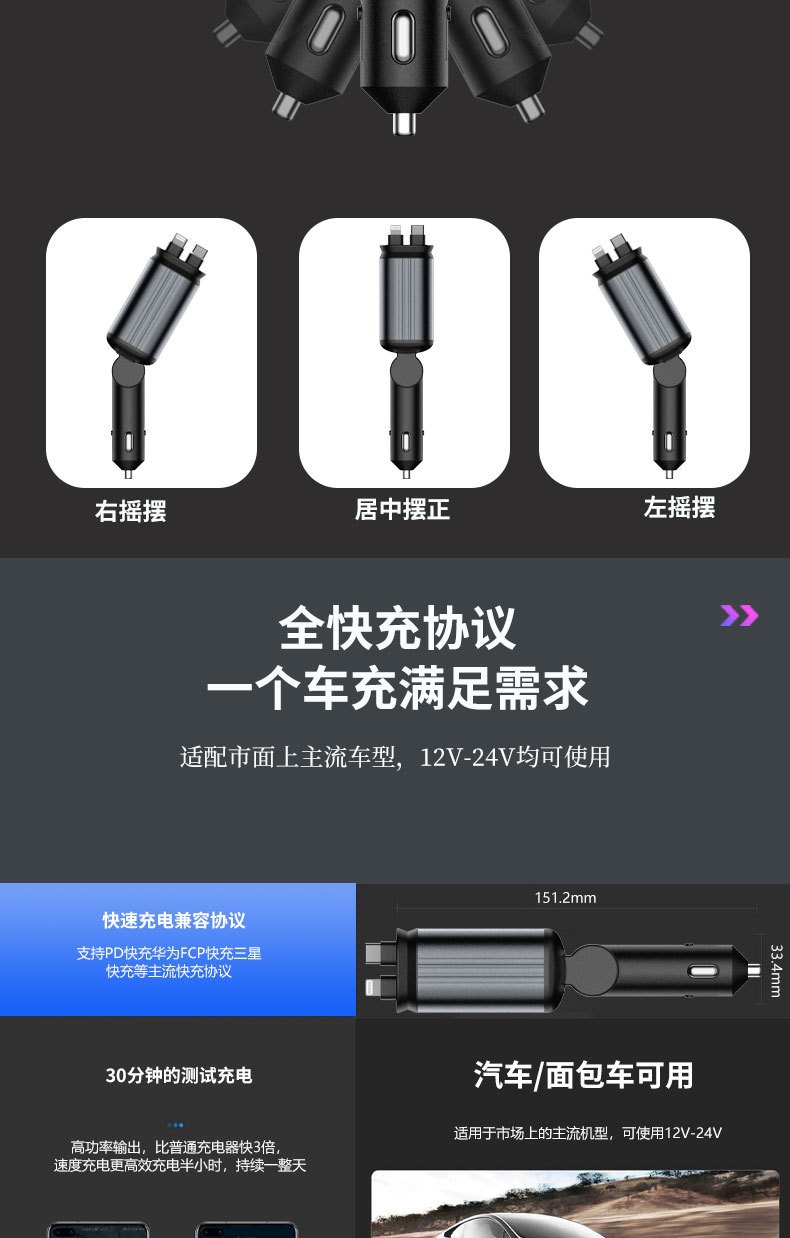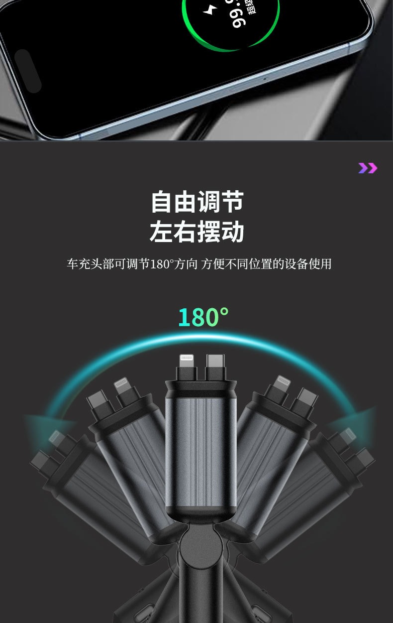 跨境C3车载手机充电器66W超级快充PD带星空顶投影灯四合一伸缩线B