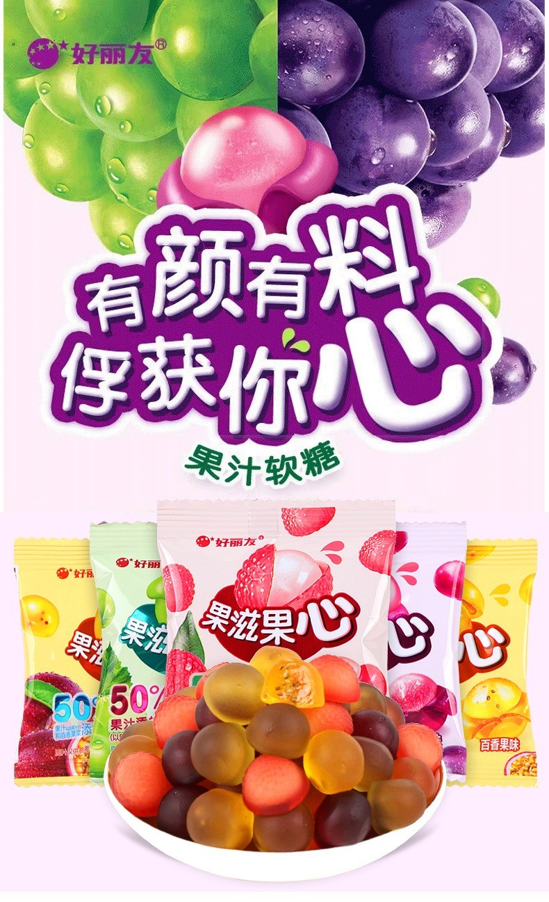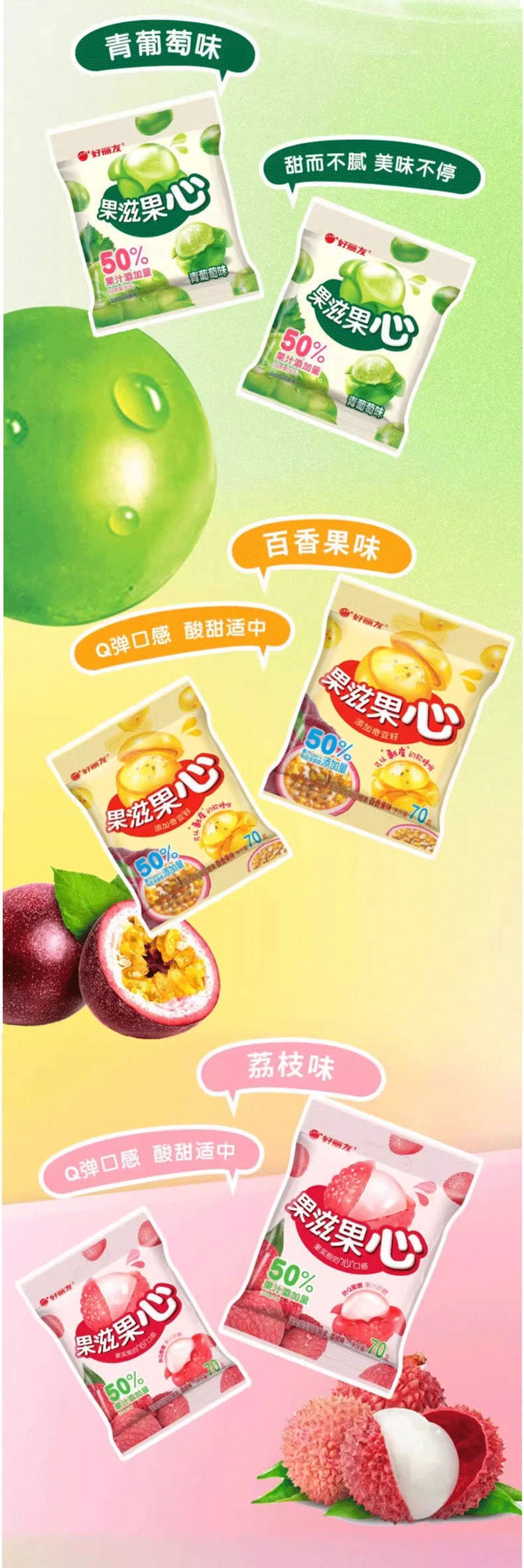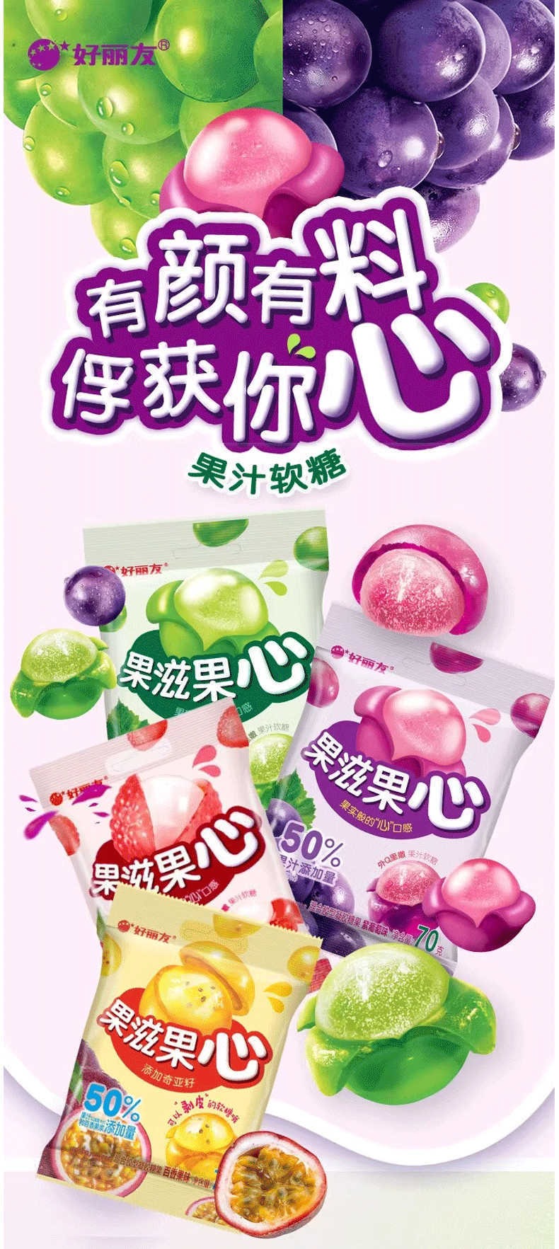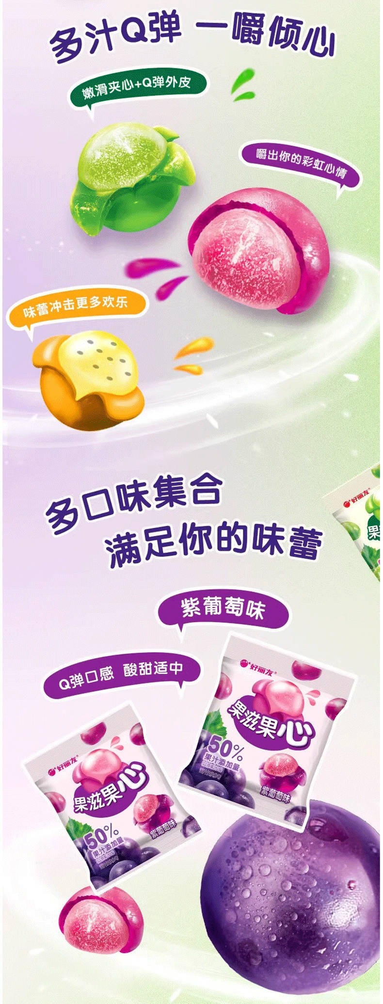 好丽友果滋果心剥皮软糖爆浆果汁橡皮糖果散装网红儿童零食软糖