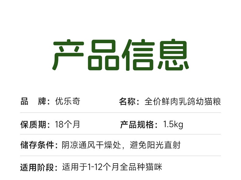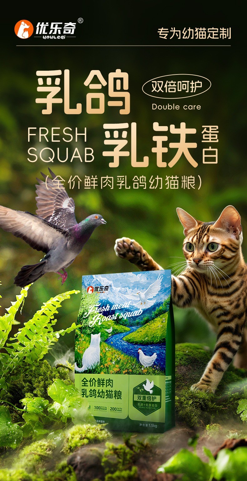 优乐奇猫粮乳鸽幼猫粮山东鲜肉猫粮幼猫粮多规格通用一件代发猫粮