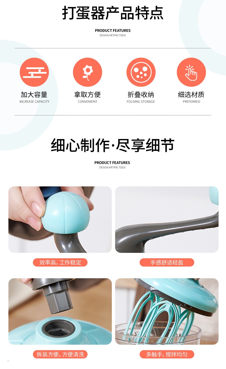 家用厨房旋转打蛋器蛋糕店奶油搅拌打发器手摇烘焙发泡蛋糕 搅蛋器