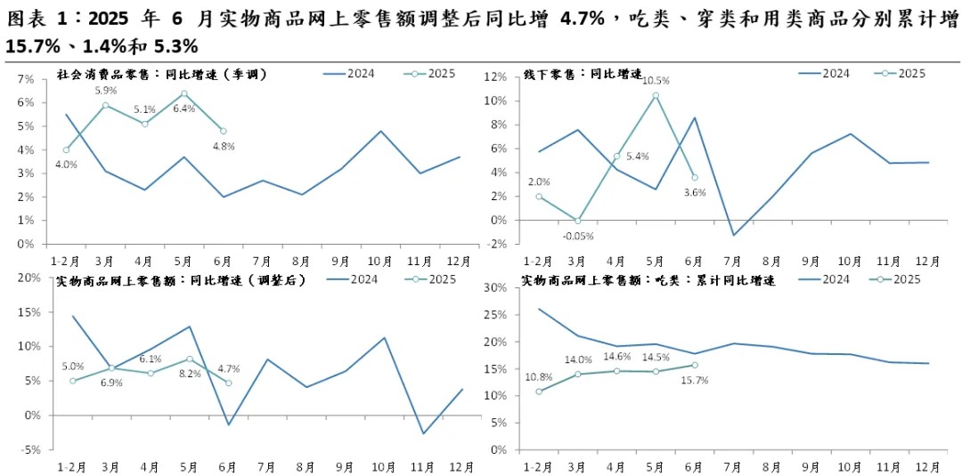 2025年2季度实物电商网上零售额调整后同比增6.3%(对比1季度增5.7%)