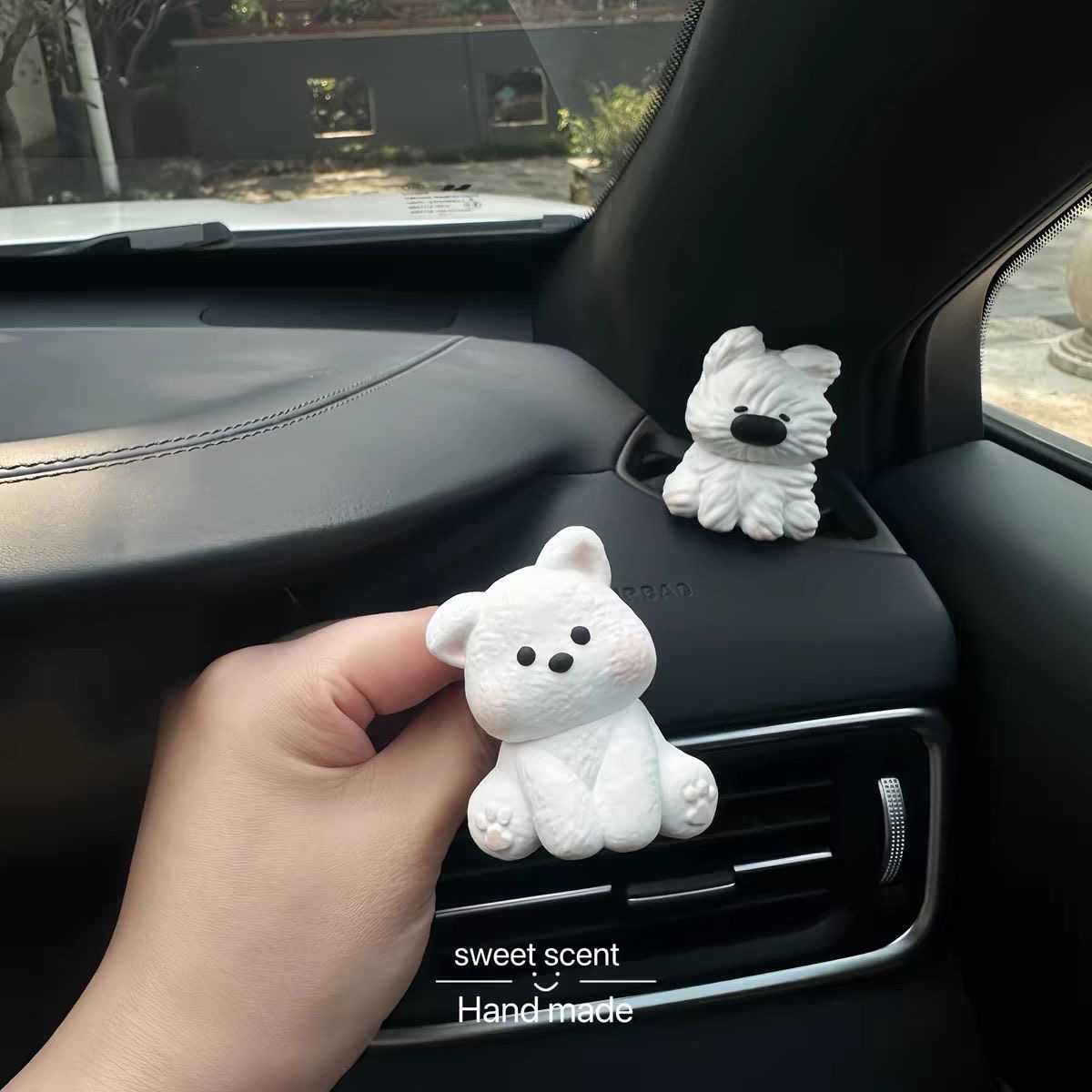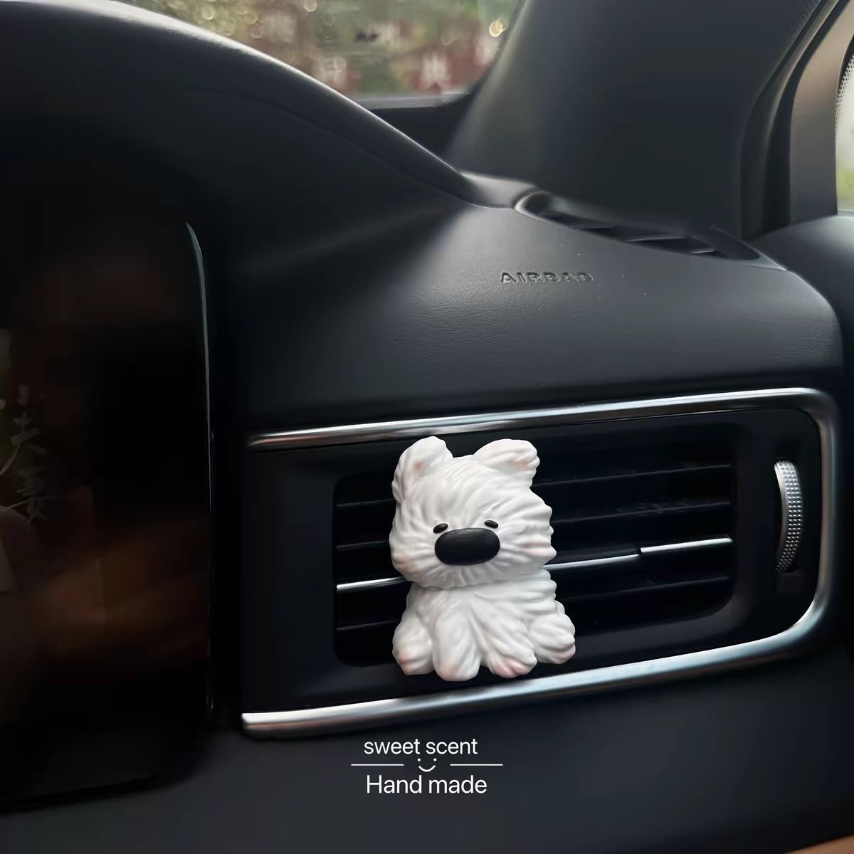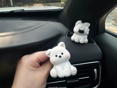 车载空调出风口香薰香水扩香石装饰夹女生新车礼物凌乱潦草小狗