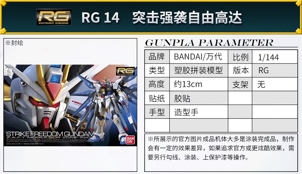 万代(BANDAI) 高达模型 RG 1/144 机动战士 敢达玩具 金刚机器人 男生礼物 RG 14 强袭自由