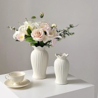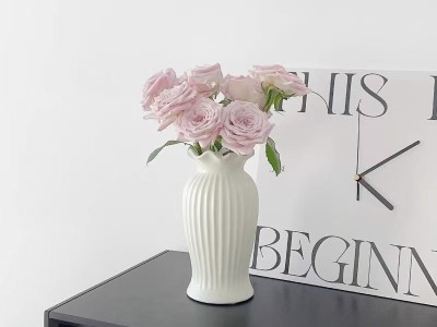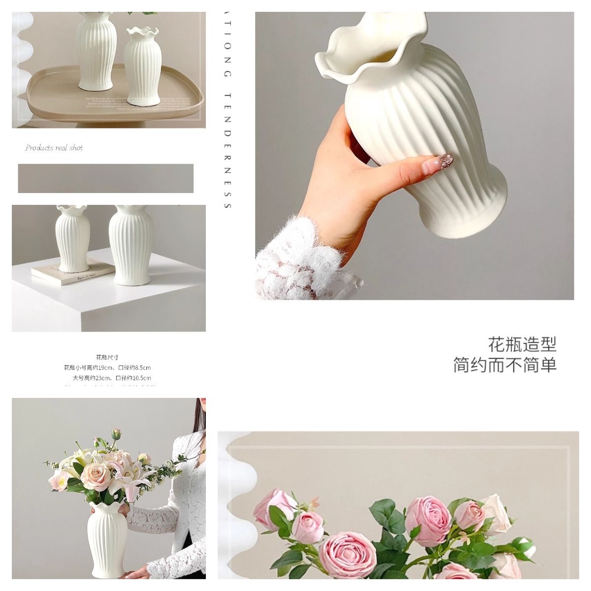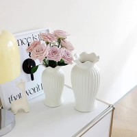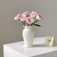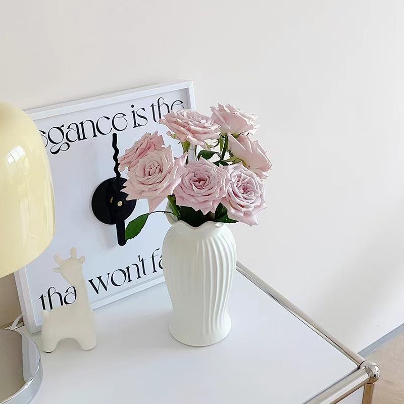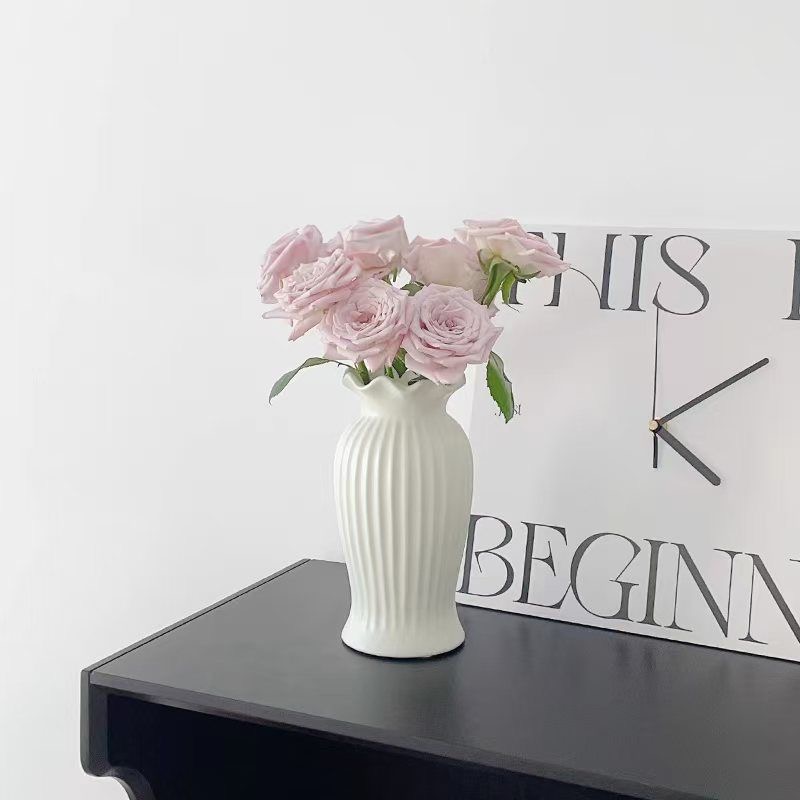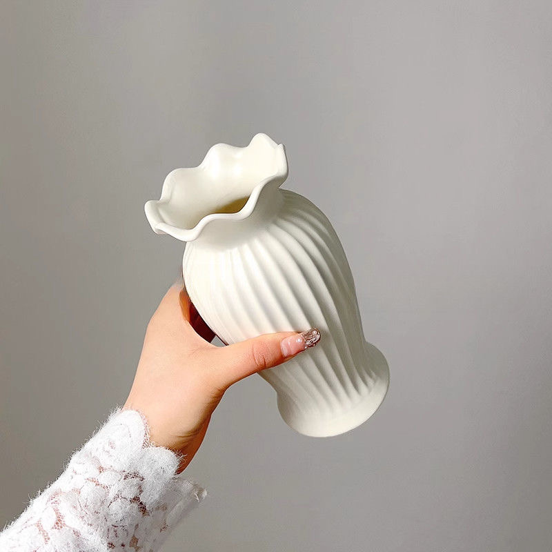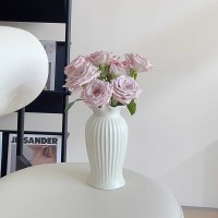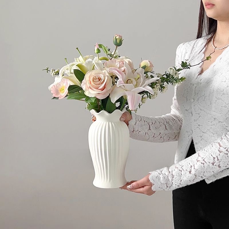 法式小蛮腰陶瓷花瓶轻奢复古客厅餐桌装饰品哑光白色水养插花摆件
