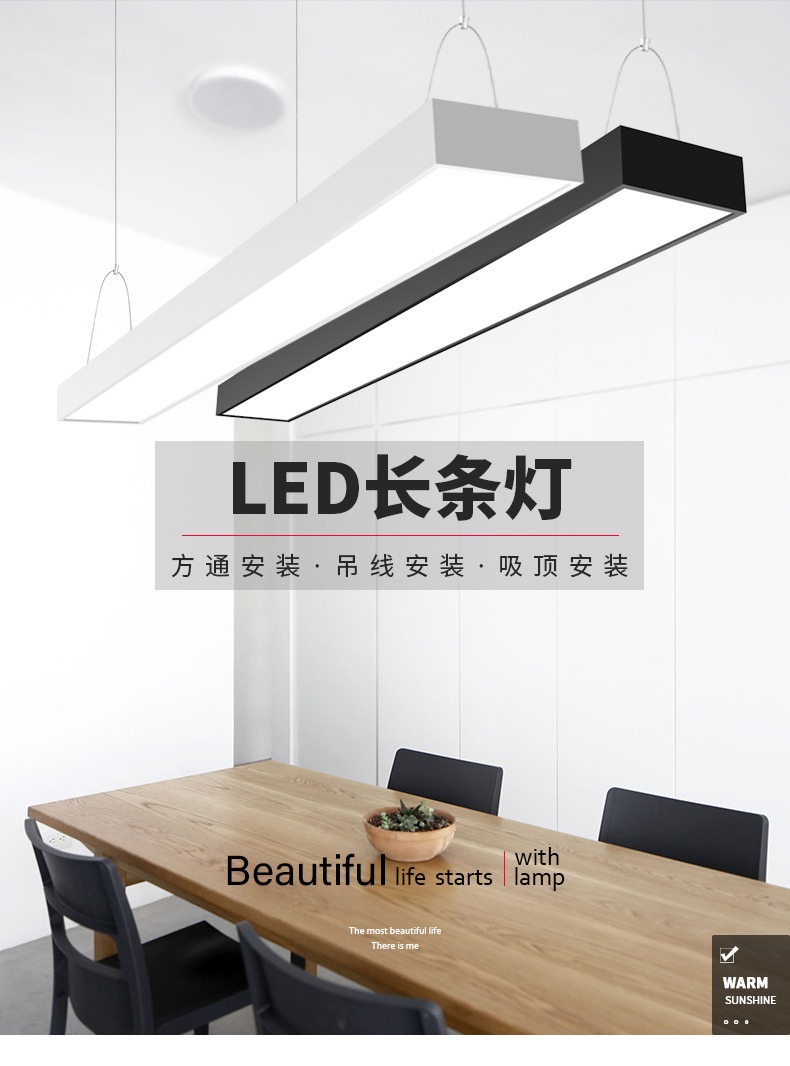 ed长条灯店铺商用吸顶吊线条形直播间吊灯办公室方通专用灯具