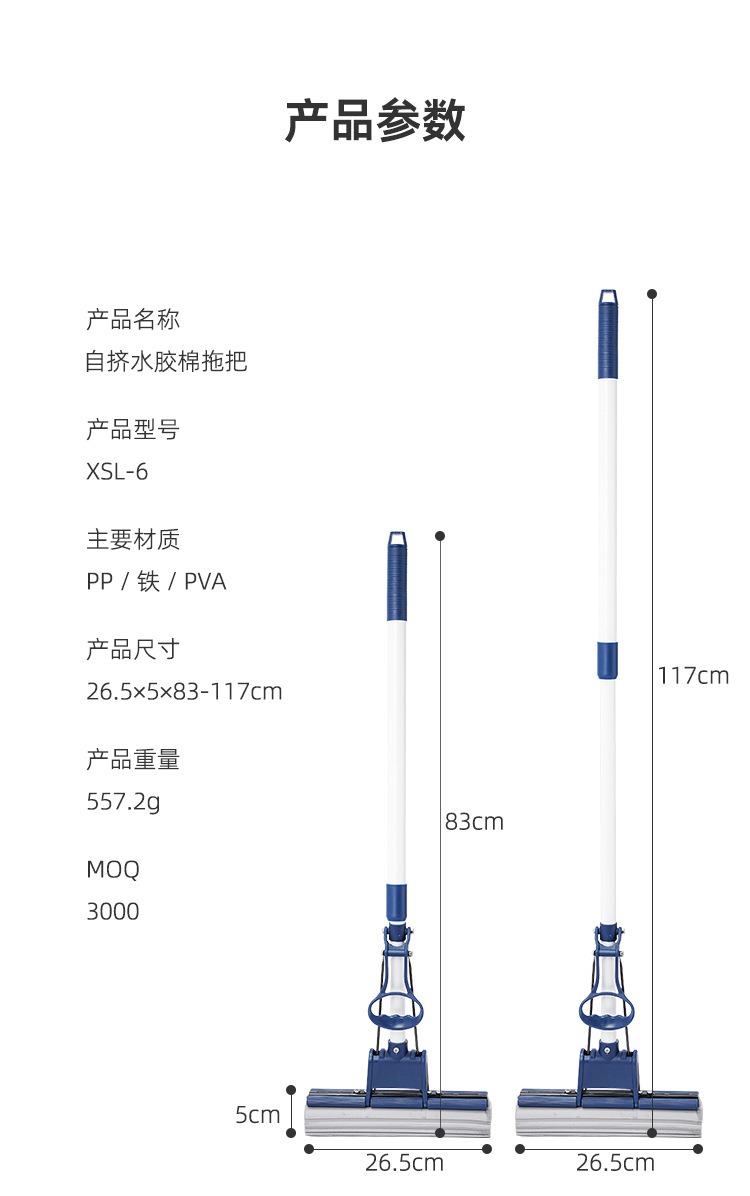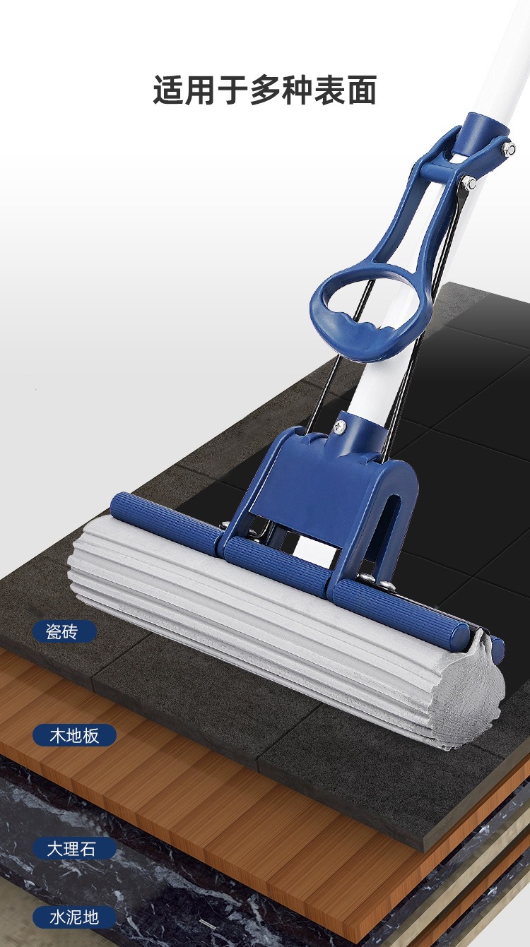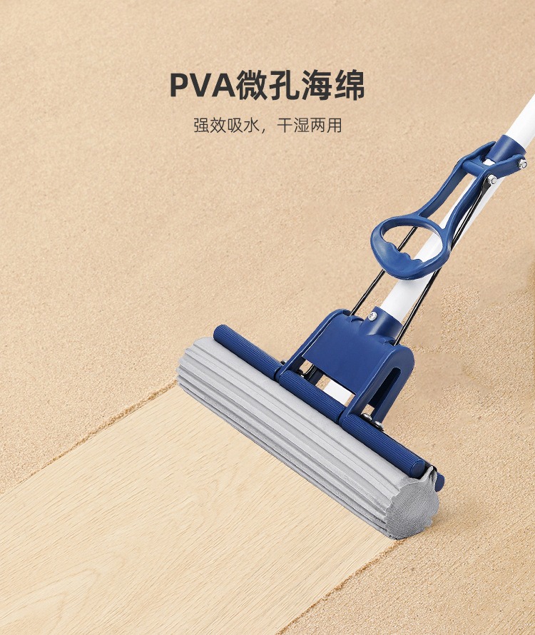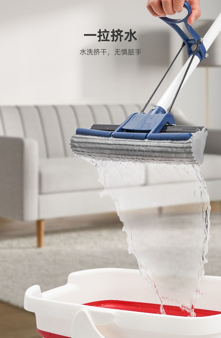 跨境现货免手洗加厚滚轮式胶棉拖把挤水海绵拖把强吸水胶棉拖把