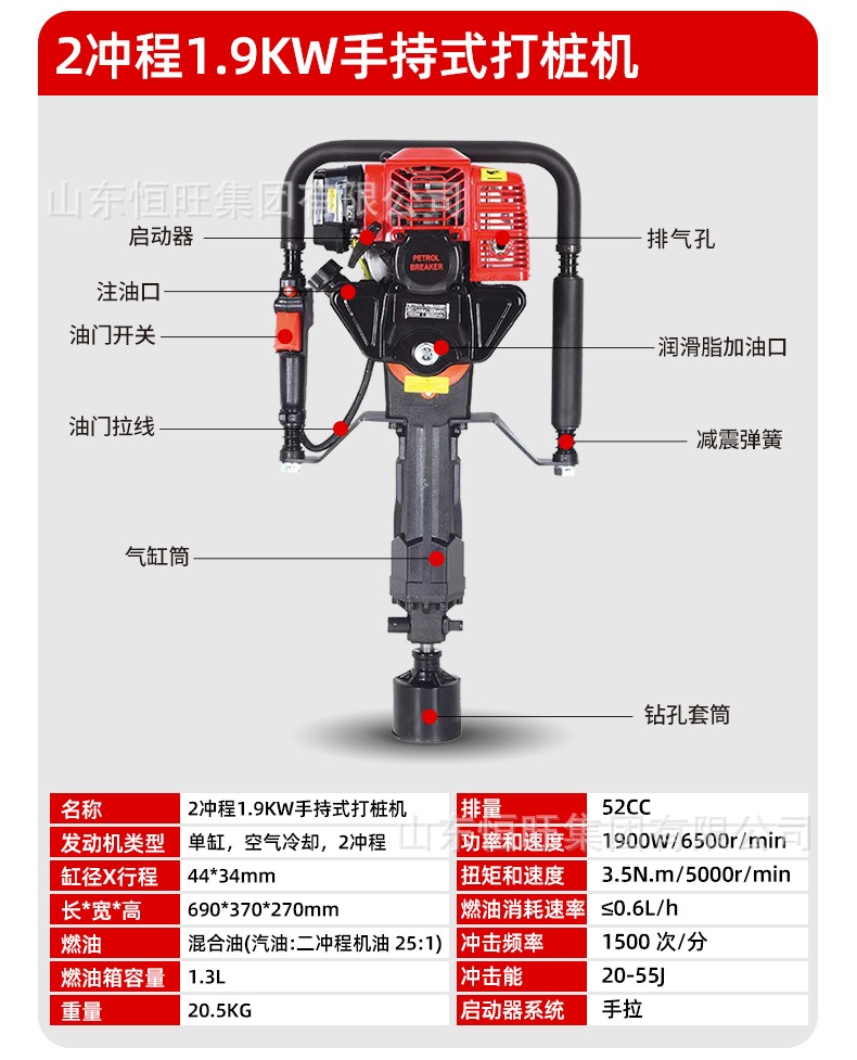 便携式植桩机手持式防汛打桩机液压打桩机抗洪用二冲程防汛 打桩机