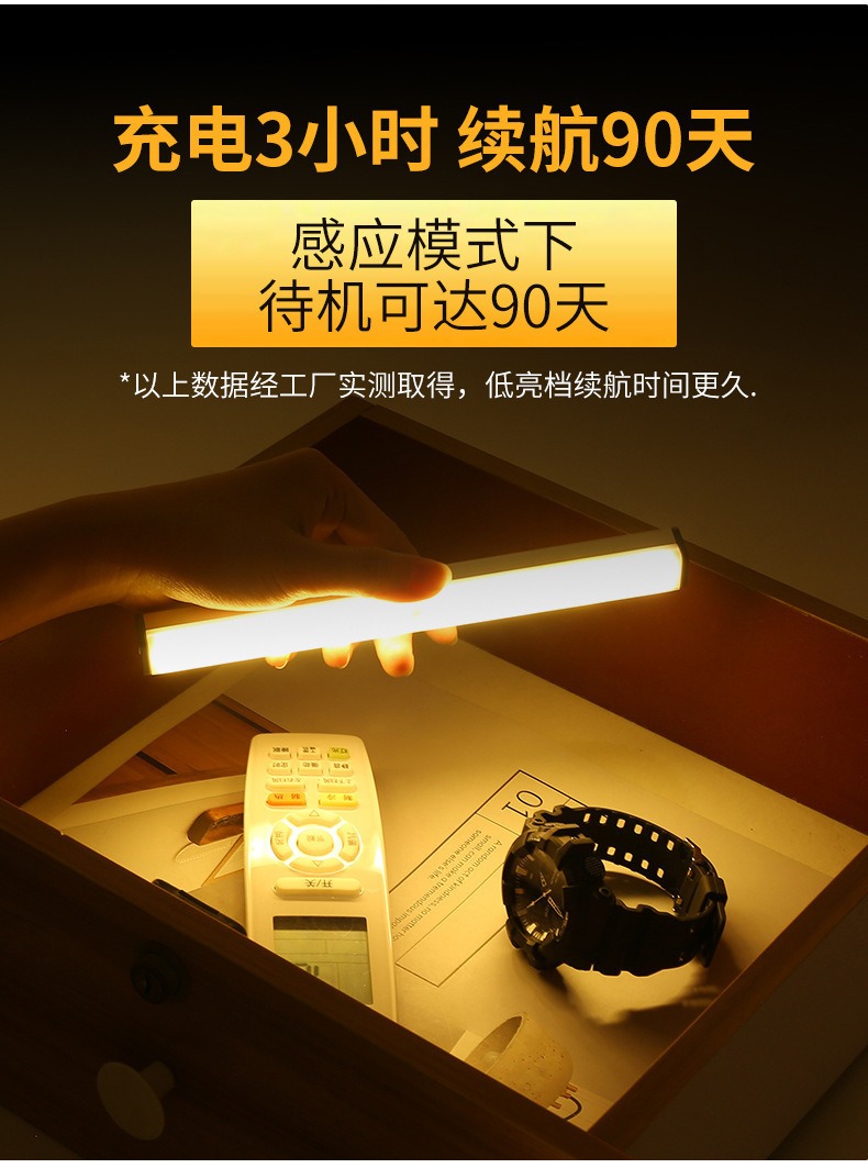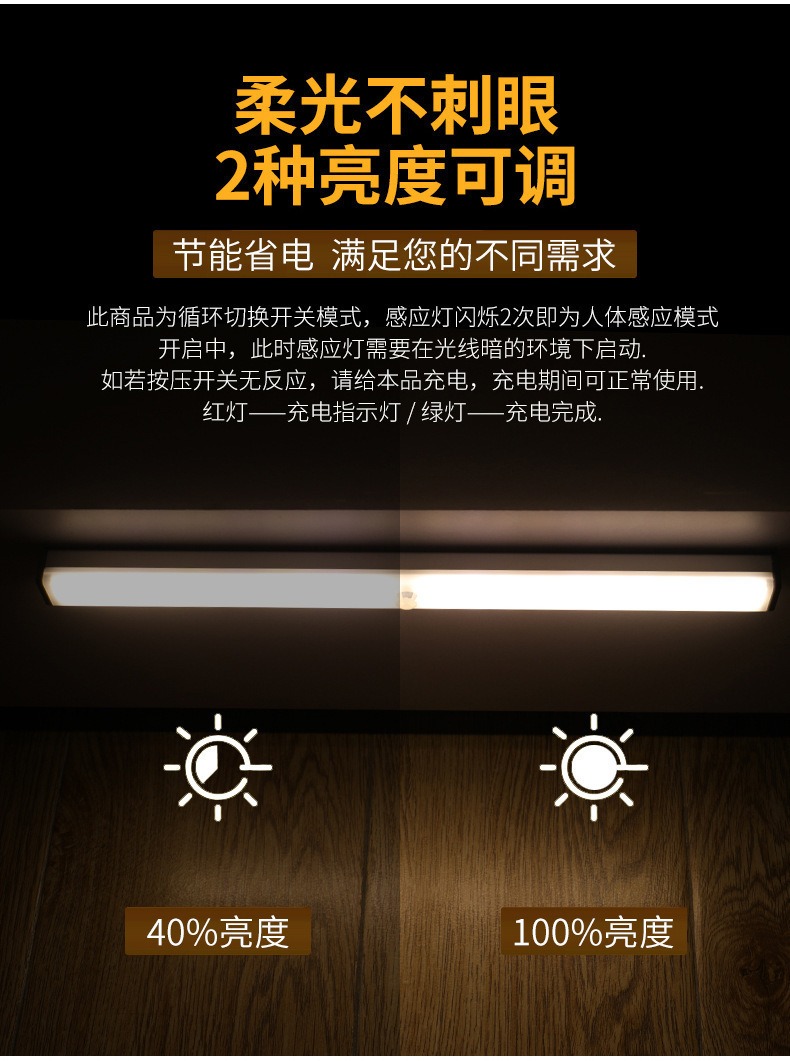 人体感应灯条usb充电led磁吸橱柜衣柜酒柜走廊过道应急小夜灯