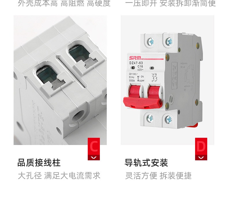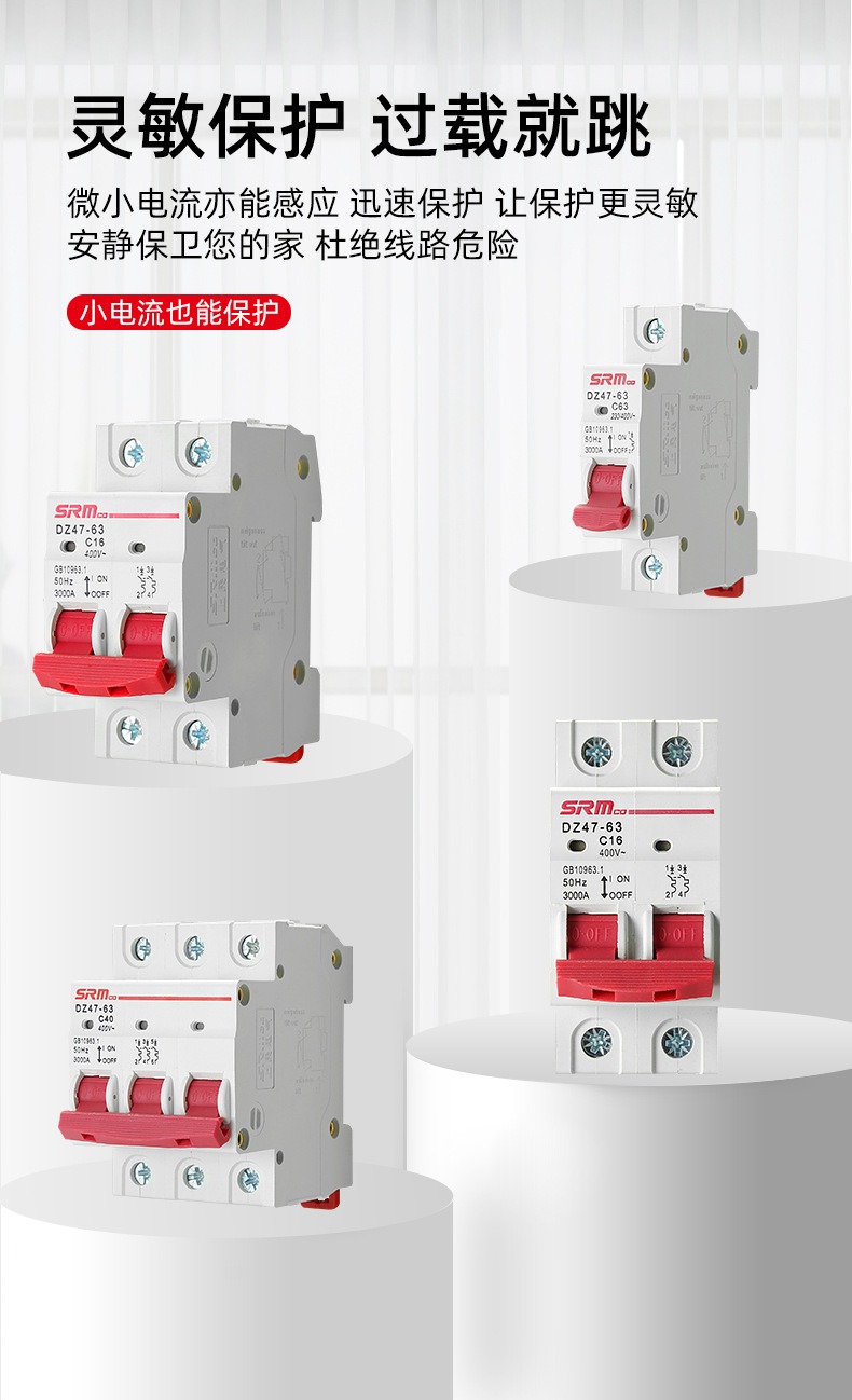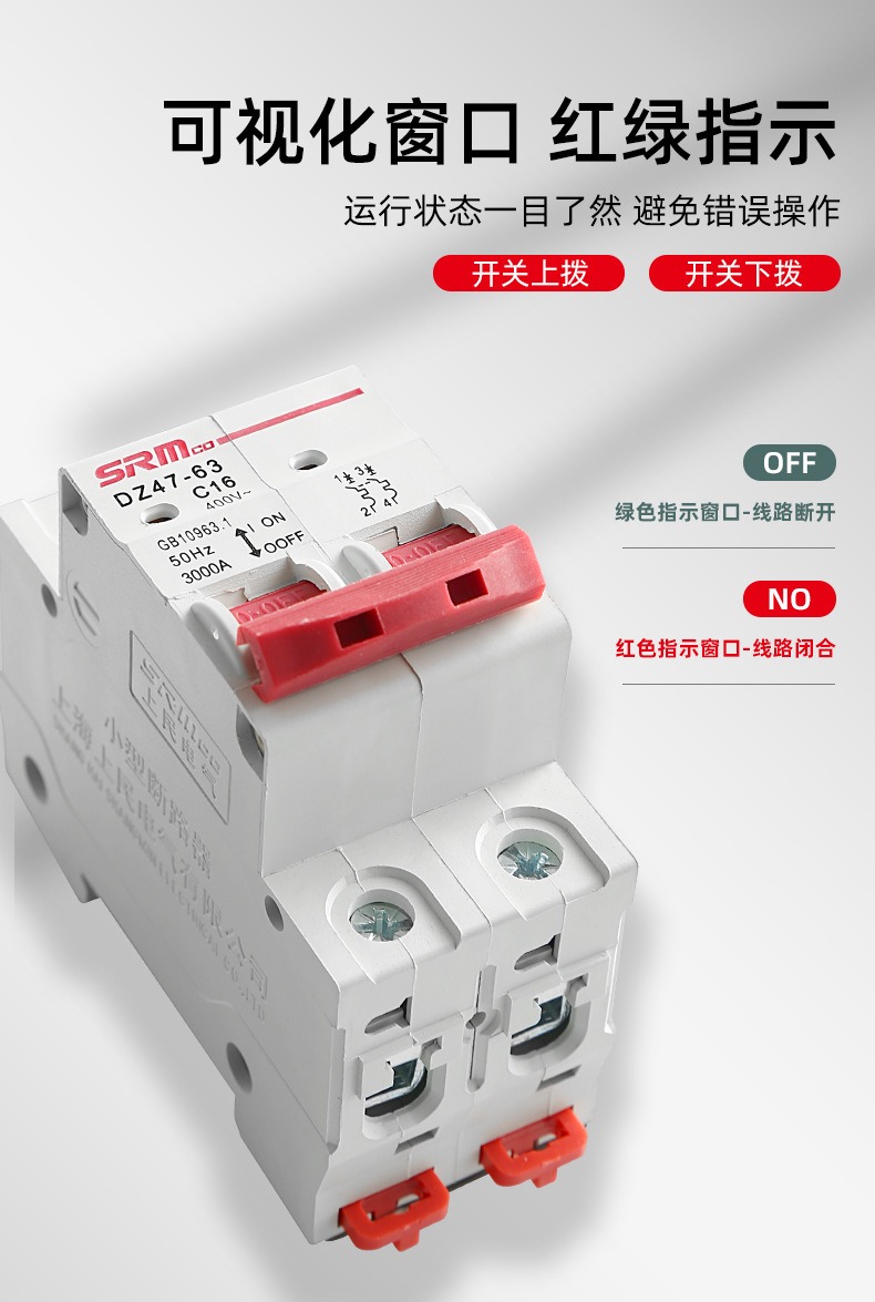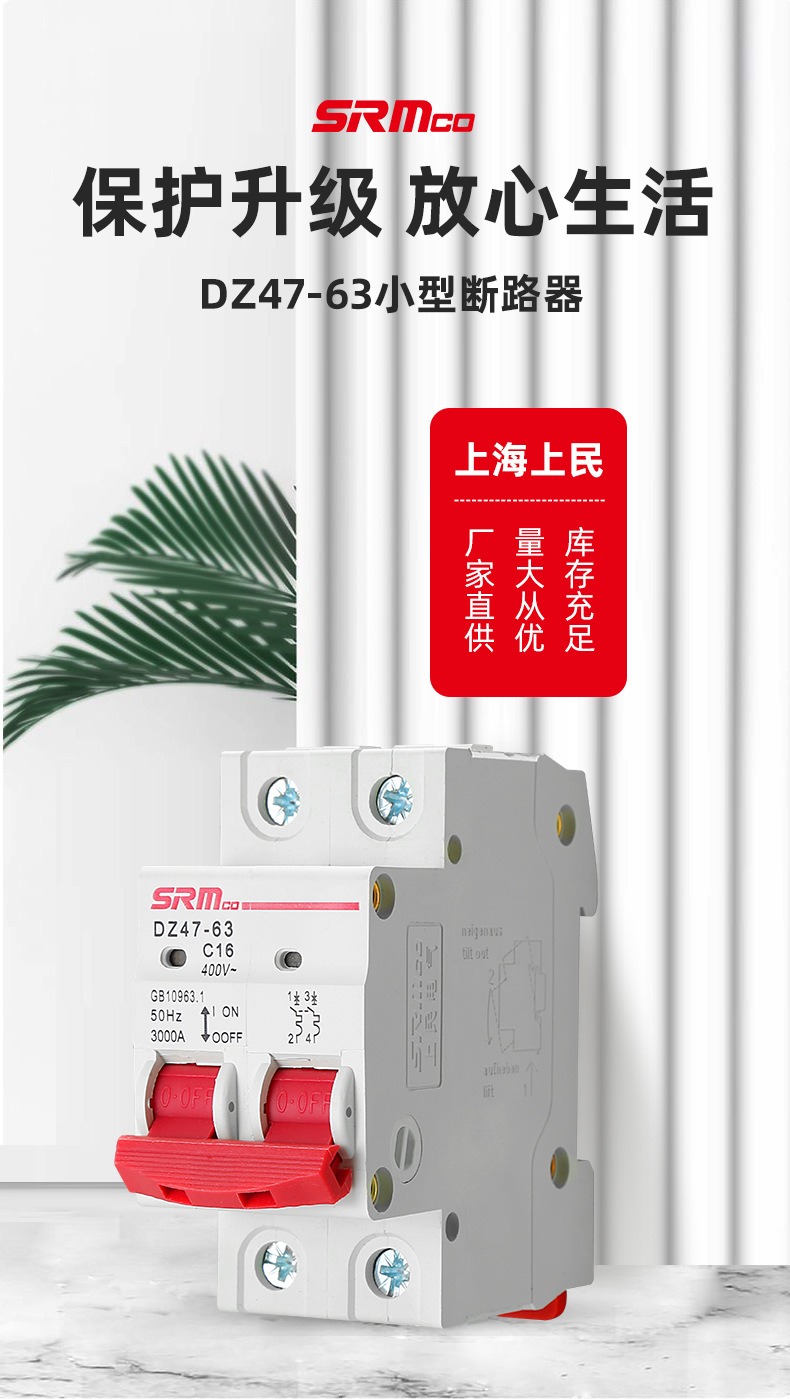上海上民空气开关小型断路器DZ47-63A总电闸空开家用1P2P3P保护器