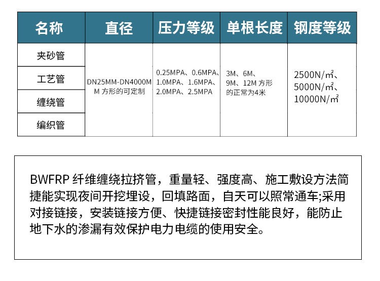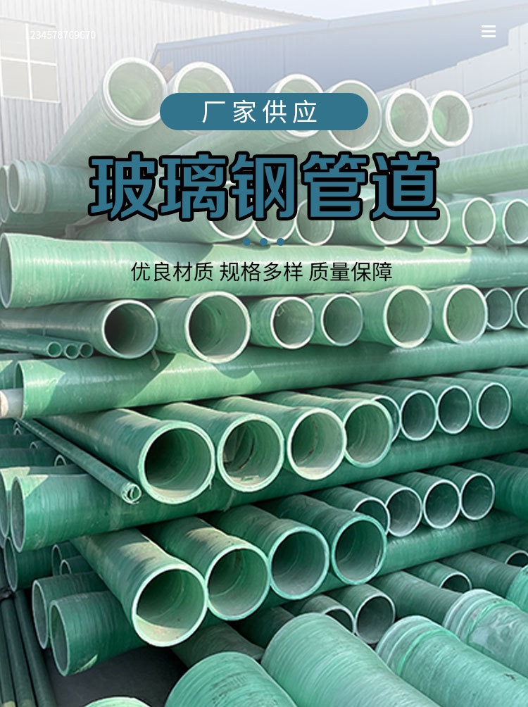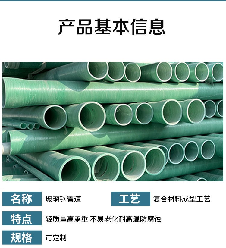 玻璃钢管道DN-400市政工程排水排污地埋式夹砂大口径管 道厂家直供