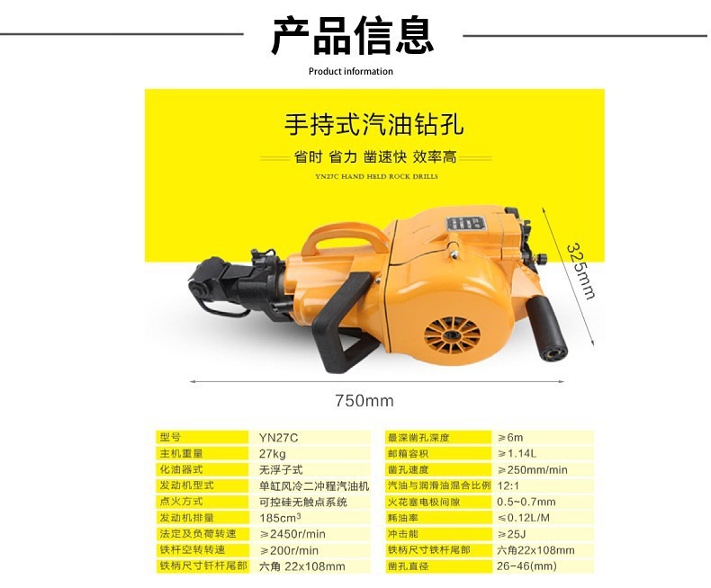 YN27C手持式内燃凿岩机 工程建筑液压钻机岩石破碎钻孔汽油凿岩机