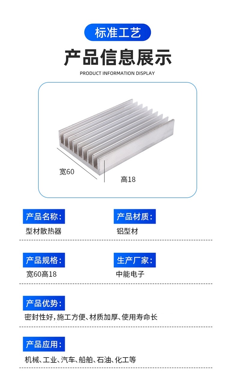 工厂直供宽60高18铝型材电子散热器电路板大功率高密齿散热片厂家