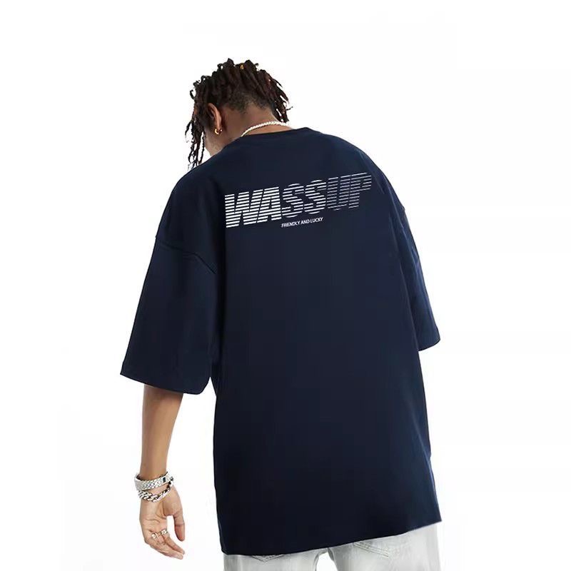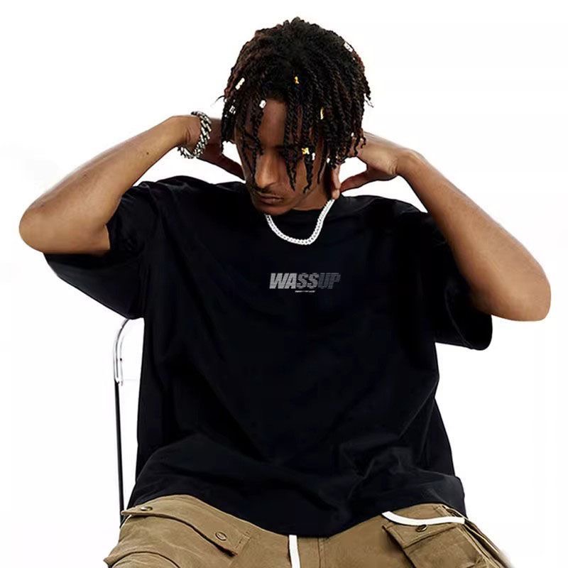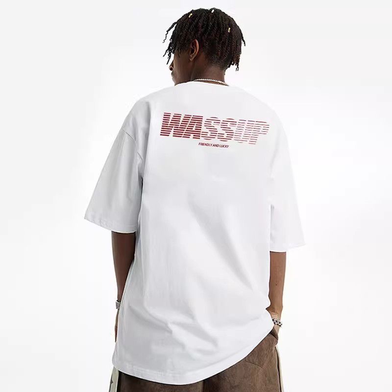 美式渐变字母纯棉圆领短袖T恤男重磅国潮夏季