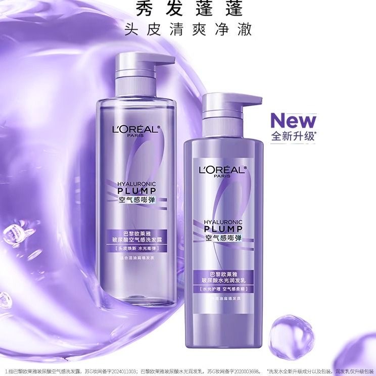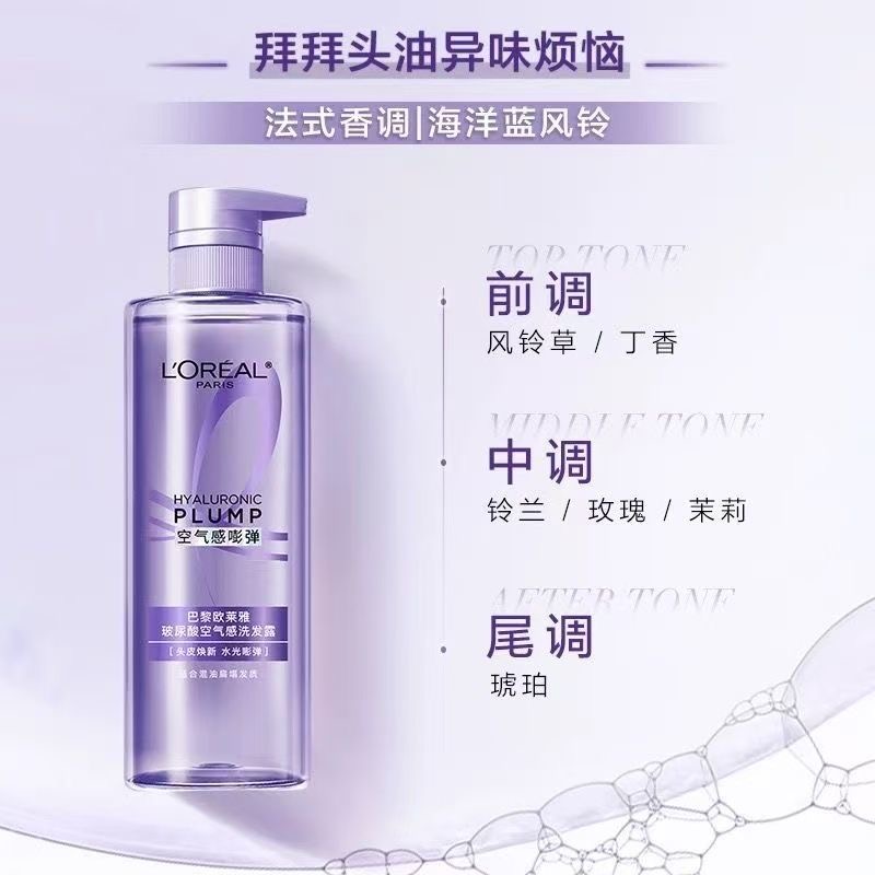欧莱雅第二代玻尿酸空气感洗发露蓬松清爽深层清洁水润顺滑洗发水
