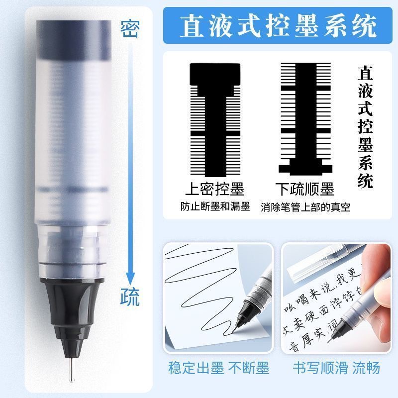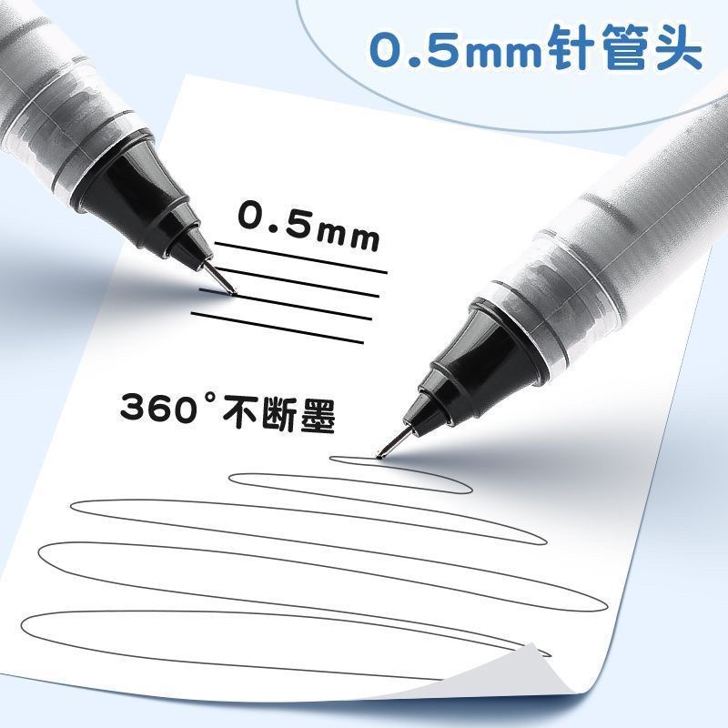 晨光直液式走珠笔学生考试0.5mm黑色大容量速干办公针管刷题神器