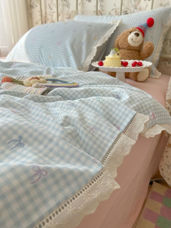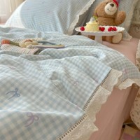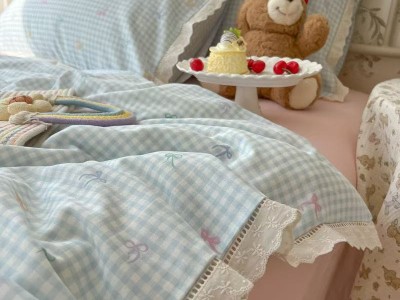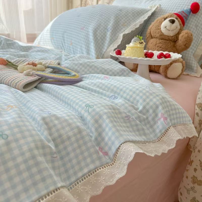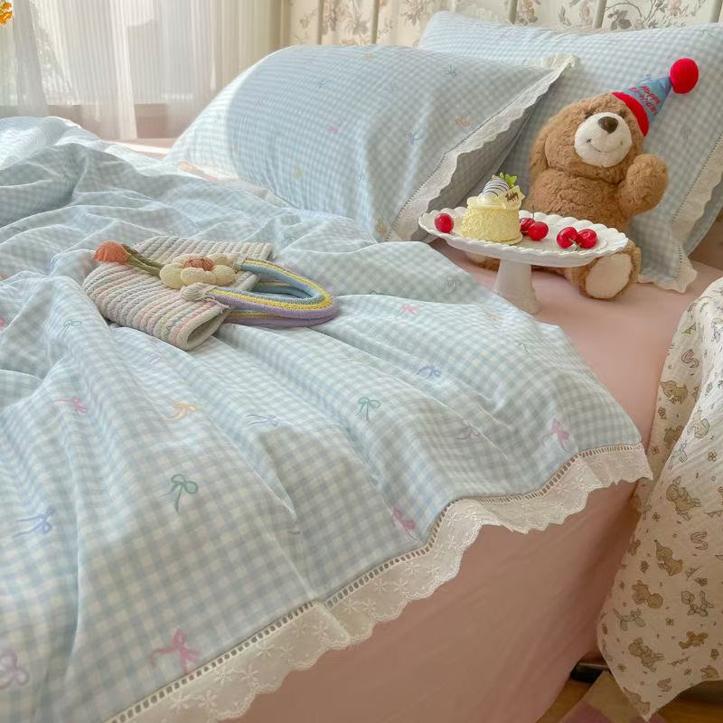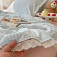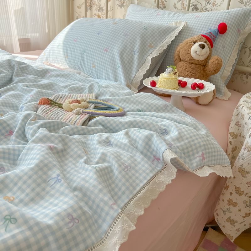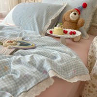 奶油风花边双层纱水洗棉床上用品四件套