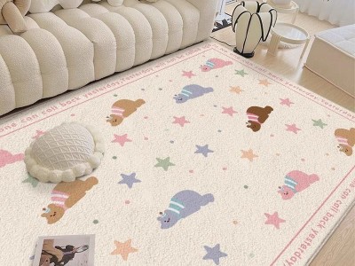 新款奶油风免打理出租屋卧室床边地垫家用沙发茶几毯