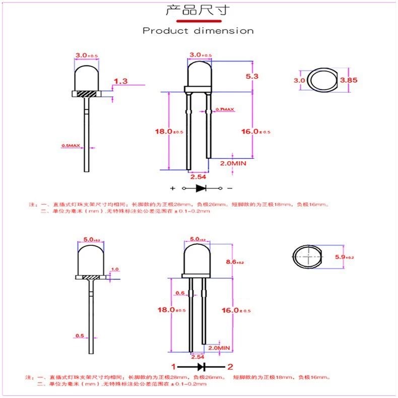 高亮雾面led灯珠F3mm5mm雾状红光插件发光二极管