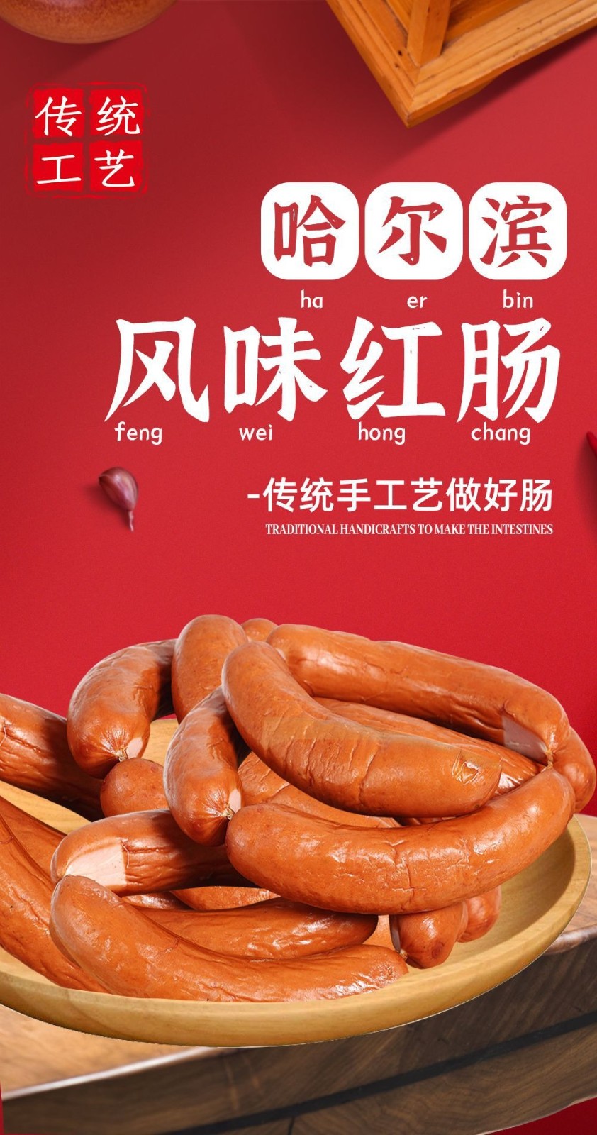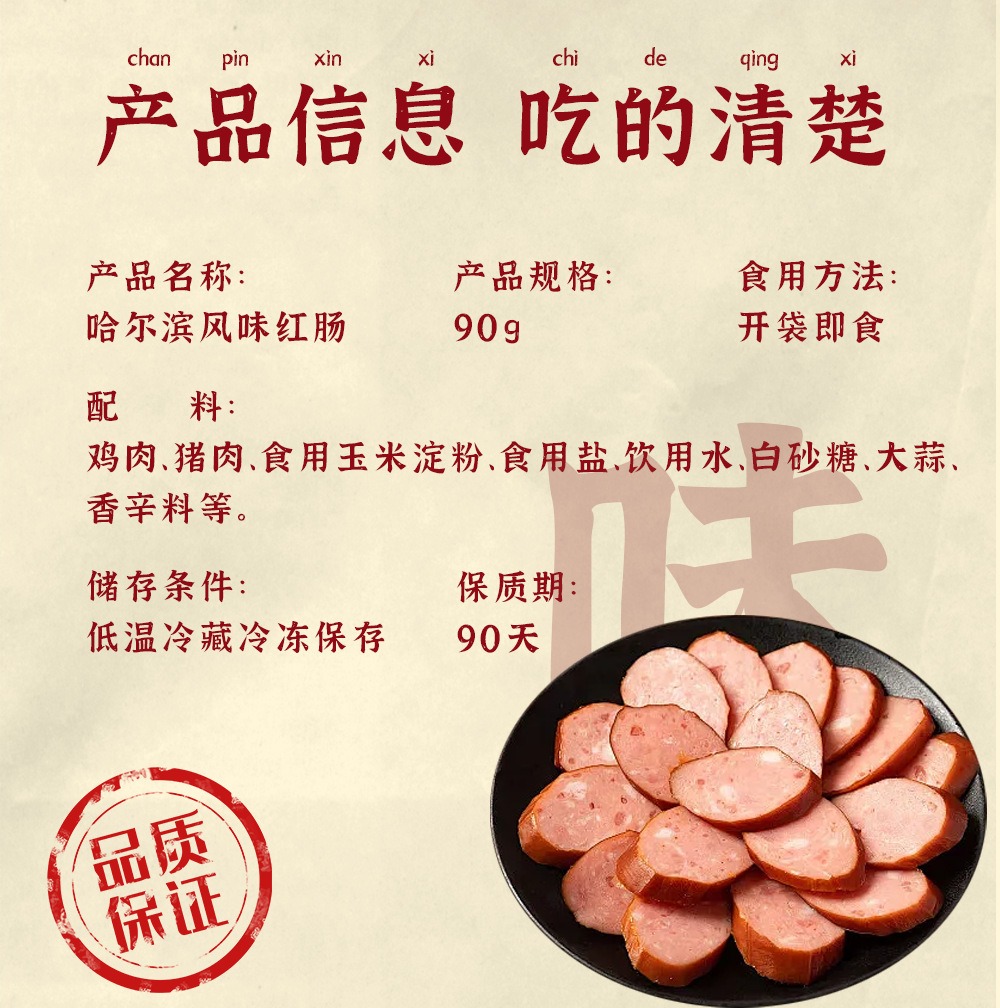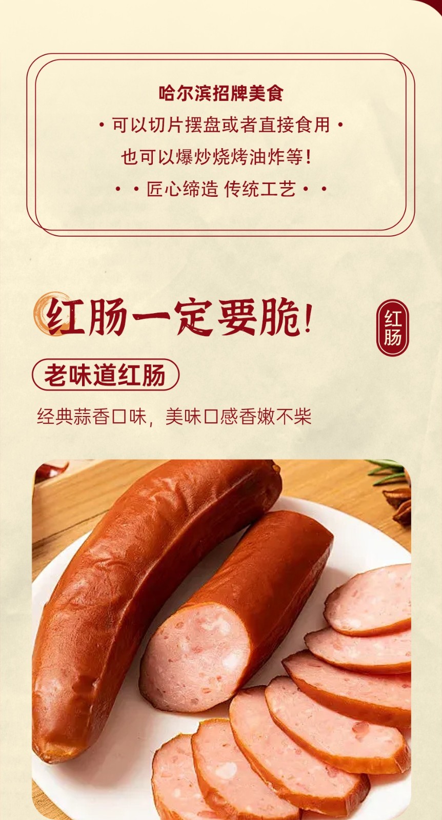 哈尔滨红肠东北特产风味肠即食香肠东北特产小吃小酒菜熟食蒜味火