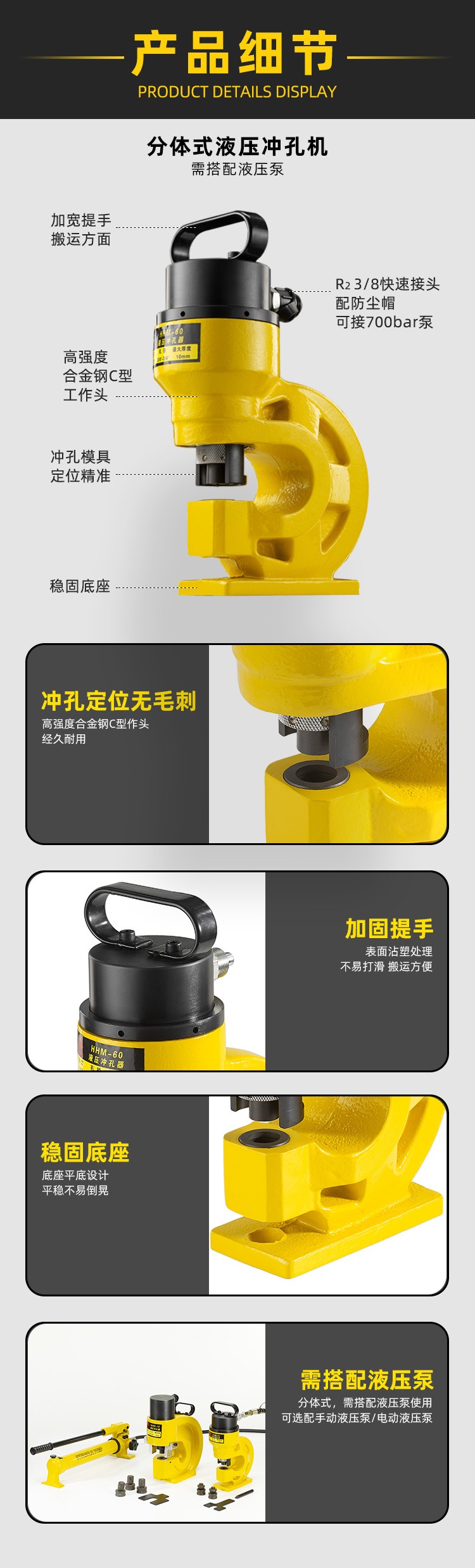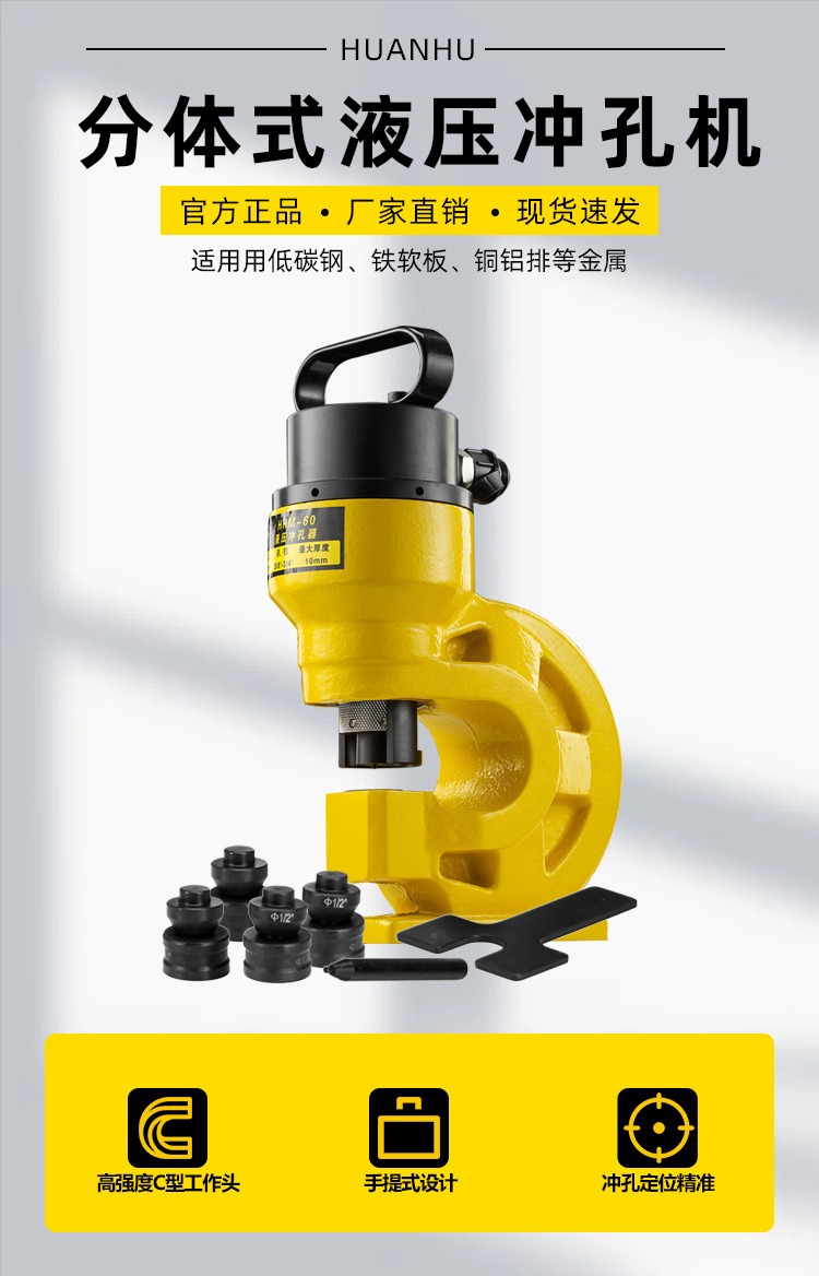 环沪牌分体式液压冲孔机 角钢冲孔铜排打孔机液压开孔器60/70 /80