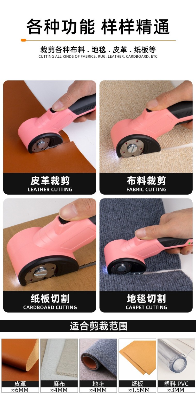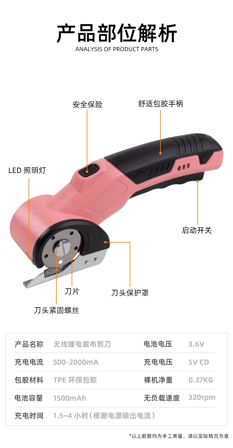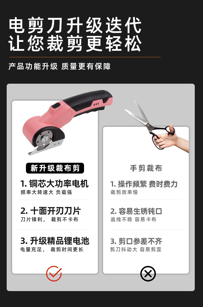现货新款电动剪 手持式服装皮革裁缝布剪 小型地毯锂电剪